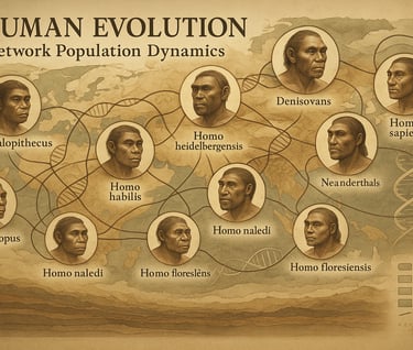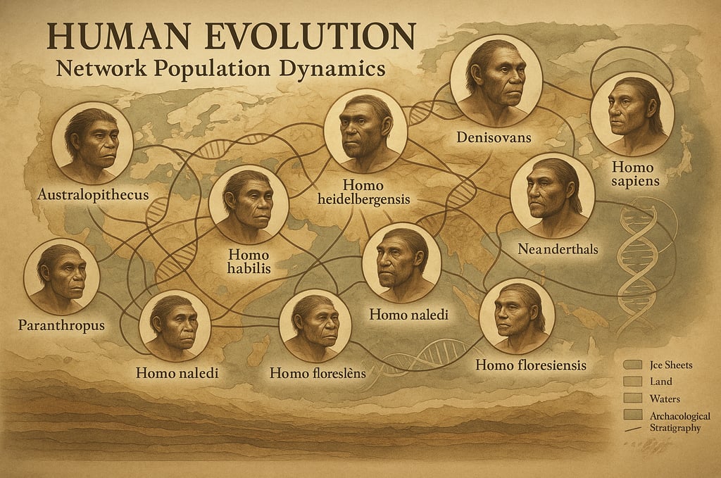 Key finding: Human evolution follows patterns of long-term trait persistence and population stability across vast geographic networks.