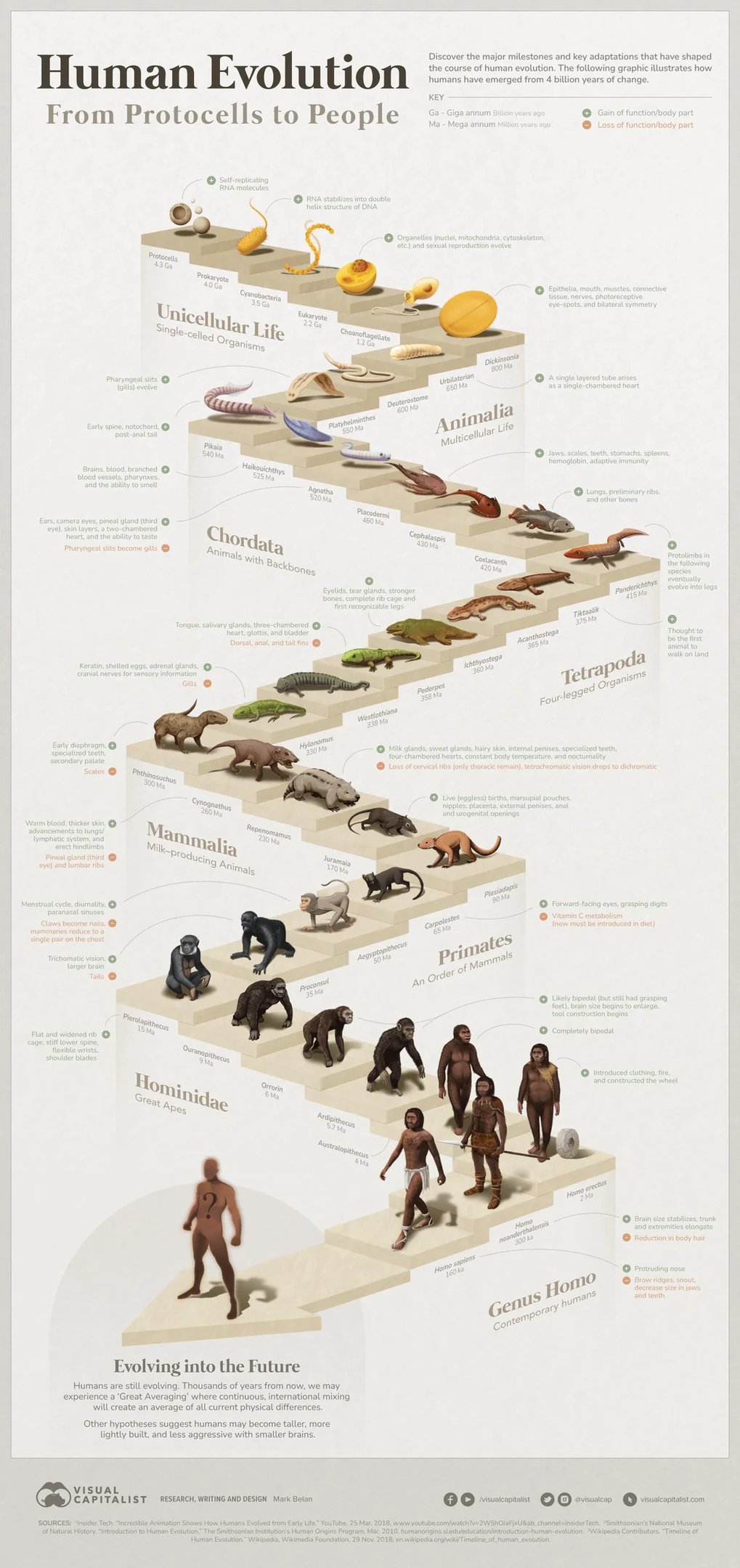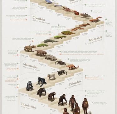 You've seen this chart. Everyone has. It's in textbooks, museums, documentaries, and countless educational materials worldwide. The "Tree of Life" showing the grand progression from simple protocols to complex humans, with that familiar march of hominids at the bottom walking toward modern humanity.